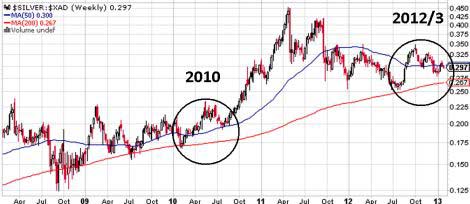 As you can clearly see – there’s not much silver kicking around. So here’s a thought: When there is clearly far less silver bullion in circulation than gold… then why is silver 53 times cheaper than gold? I admit this is comparing apples and oranges to a degree. They are different markets and have different fundamentals. But the core reason for the different price is that gold is primarily an investors metal, be it punter, hedge fund or central bank – they are buying for its investment qualities. Whereas silver has long been an industrial metal, with a few investors making up a portion of purchases. But this is changing. As recently as 2007, investment demand was just 5% of the market. By 2012 investment demand was 30% of the market. And this is where China comes in. Chinese precious metals demand has exploded recently. All the press focus on the gold side of the story, as China’s hunger for gold means it’s now the main player in the market. That’s what happens when an economy grows in size five-fold in a decade, and gold ownership becomes legal (and encouraged) along the way! But the silver story is just as bullish. The Chinese Passion for Silver and GoldThe key point here is that China has only recently switched from being a silver exporter, to a silver IMPORTER. In 2012, the tide quietly turned in earnest. The silver stopped flowing from Chinese ports to Hong Kong, and started flowing from Hong Kong ports to China. You can see how clear this trend of Chinese silver imports is in this chart I provided recently. Investors often wish that someone would ring a bell to signal the turning point in a market. Well this is just about as close as you’ll get. Whenever China’s hunger for any particular commodity has forced them to import the commodity, it has been a watershed moment. Although Chinese gold imports have soared to record levels recently, China actually became a significant net importer of gold (5 tonnes/month) as far back as 2007. And since then the gold price has climbed from $600/oz, to $1650/oz. China is still there now, buying all the dips with their ears pinned back. Today silver is looking at a similar transformative event in its market as China is now a net importer here too. What’s great for investors today is that this has only just happened, which means you have time to act. So it’s no coincidence that silver’s technical chart is looking interesting again. Over the last six months it has bounced off the 200-week moving average, to find support around the 50-week average more recently. This is very bullish, and the last time we saw this pattern was back in 2010. And it was the prelude to the mother of all silver rallies, which saw the silver price more than double in just nine months. Australian Dollar Silver Brewing for its Next Monster Rally?![]() Source: stockcharts