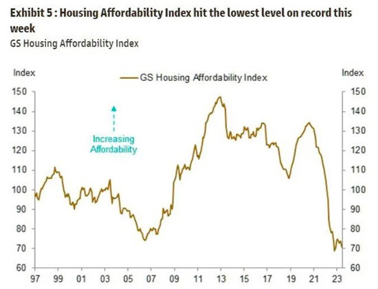2. Mortgage costs are also higher, and there's no guarantee interest rates will fall back to 3.5% mortgage rates. As this chart illustrates, the cost of servicing today's mortgages is significantly higher than in years past.