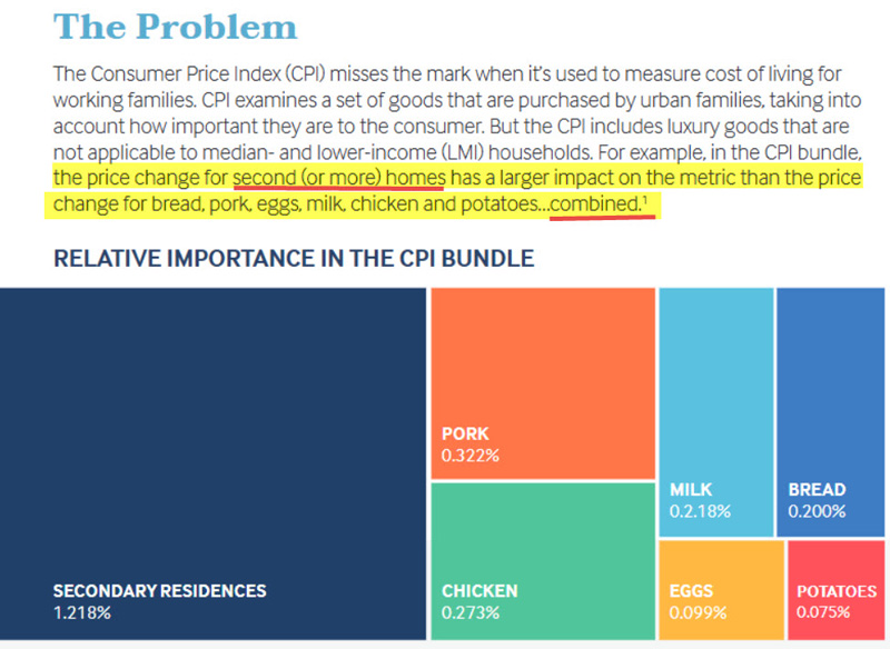 To be clear, the CPI’s statistics may be accurate, but the data used in the CPI doesn’t accurately reflect the average American’s situation.