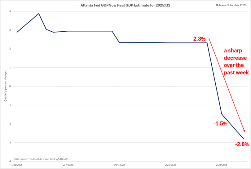 Then, on Monday, additional data sent the forecast tumbling even further to a staggering -2.8%, reinforcing the recession warning and silencing skeptics who doubted Friday’s sharp decline.