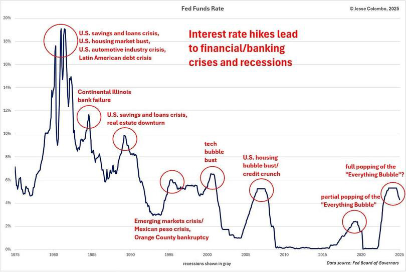 In general, the Federal Reserve raises rates until “something breaks,” and that something is typically industries or speculative booms that flourished in the prior low-rate environment.