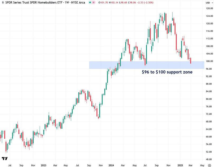 A decisive close below the $96 to $100 support zone would signal the onset of a deeper bear market in housing and homebuilder stocks—one that will ripple through the broader U.S. economy, accelerating the downturn.
