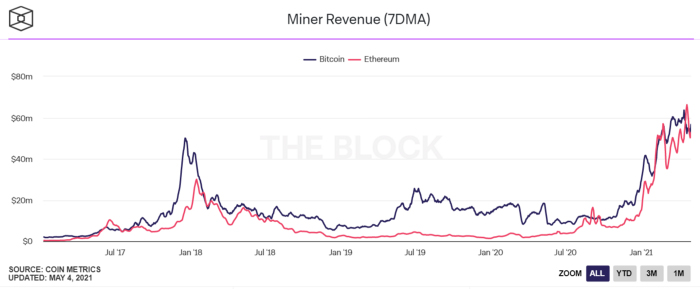 To paraphrase Orwell, people have a remarkable ability to assume false beliefs and hold on to them, despite mounting evidence to the contrary. But such false beliefs eventually bump up against reality, often on a battlefield. In crypto, the battlefield in question is one of adoption and evolution. Put differently, every doge has its day, but most eventually fade away because they serve no purpose beyond speculation. The world only needs so many decentralized platforms, and the energy consumption of proof-of-work or the cost of capital of proof-of-stake lead to certain winner-take-most tendencies. To the extent that everything in this world is about security, a smaller platform with a less valuable coin is a dangerous thing. Bitcoin is and always will be Bitcoin. The race for #2 is not as interesting as it seems. There will always be niche platforms that serve specific functions, but those might be replaced by viable (and more secure) Layer 2 alternatives. So here we are, and the price of ETH is suddenly surging, with ETH dominance back up to a more respectable 17% and the cross rate double the recent low. A lot of people have been asking me why. A more appropriate question might be what took so long. * * * The rebound in the price of ETH has some people wondering how one might value a different kind of cryptocurrency, one that’s not as singularly defined as Bitcoin. Here I find ethereum easier to tackle. Bitcoin is money, and the value of money is highly relative. Ethereum on the other hand is a digital platform, and smart people have been putting valuations on digital platforms for a long time. I’m not one of those people, and ultimately find price the least interesting aspect of crypto. But for those willing to try, I have a few suggestions. To value ETH, and to see why some people still consider it undervalued despite the recent surge, consider the following: Payments: Non-blockchain based payment platforms such as PayPal, Visa, Mastercard and Ant are currently among the most valuable properties around. Their combined market cap is greater than that of the world’s banks. Ethereum is also a payments platform, not just for crypto and a gazillion other things, but also for fiat. It’s far more versatile than the above, offers better economics and is growing rapidly, thanks to the killer application of fiat stablecoins. On-chain stablecoin volume surpassed $500b in the month of April. That’s already twice what PayPal moves in an entire quarter. It has increased by 1600% since the last time I made the case for why ETH was undervalued on the payments potential alone, which was only 20 months ago. PayPal volume has only grown by 50% in that window and the card networks have grown far less. Ethereum will continue to take market share because it offers features that those legacy rails never will, such as global access (including for the unbanked), programmability, transparency, real-time settlement, and cryptographically guaranteed DVP vs an infinite number of other value stores. No amount of investment or upgrading of the existing payment infrastructure will achieve these features. Visa could spend a billion dollars upgrading VisaNet but it will never move stocks (that’s why it’s throwing in the towel and embracing stablecoins, just as PayPal is looking into issuing its own). Banking: So-called Neo banks, challenger banks and FinTechs are also hot properties. They may not be as valuable as the payment providers, but expected to be a disruptive force in financial services. Many are not that innovative, as they just take a hundred year old business model and execute it using APIs and the cloud. They are incremental in their innovation, more Blu Ray disk than Netflix. Thanks to DeFi, Ethereum is home to the hottest and fastest growing true FinTechs in the world, some of which operate on business models that have never existed before. MakerDAO is already bigger than 97% of all American banks, thanks to a balance sheet that is almost 50x larger than the median (it also earns close to $160m a year in pure profit — enough to make many FinTechs drool).