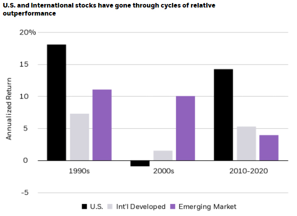 Data Source: Trading Economics, various central banks So, when US monetary policy also turns dovish as it did in 2019, the dollar has plenty of room to decline. The second answer to that question has to do with valuation. Suppose a value stock had a price/earnings ratio of 10x, and you expect 5% earnings growth this year. And suppose a growth stock had a price/earnings ratio of 30x, and you expect 15% earnings growth this year. What happens if, despite expectations, the value stock only grows earnings by 4%, and the growth stock only grows earnings by 7%? Due to high valuation and the bigger relative gap vs what was priced in, the overvalued growth stock has a lot further to fall in that scenario than the value stock. The dollar is specifically propped up in a bullish cycle due to tons of offshore dollar-denominated debts, structural scarcity for dollars outside of the United States to service those debts, and a decade of capital inflows to the United States. Now, in an environment where all countries including the US create massive liquidity and create more currency units, the currency that was specifically overvalued due to scarcity relative to required demand (the dollar) is the one that has the furthest to fall, because that specific scarcity/liquidity problem that was propping it up gets addressed. Trade deficits imply an overvalued currency (too much importing power, uncompetitive export pricing), and trade surpluses imply an undervalued currency (too little importing power, and overly competitive export pricing). Mercantilist countries can manipulate their currency to keep those trade surpluses open for a while, and the global reserve currency can go decades with trade deficits, but when monetary policy stops pushing against these inherent trade forces, exchange rates have a tendency to push back towards the direction of balanced trade. When the US is in a strong dollar cycle, has a big trade deficit, and then cuts interest rates and shifts from quantitative tightening to quantitative easing, the dollar has plenty of room to weaken compared to currencies of developed nations that already have trade surpluses (i.e. undervalued currencies), even though the dollar is the global reserve currency. We saw that happen this year, so the question is whether it will continue. Plus, US stocks are more expensive than many other nations, even when adjusting for sector differences. So, if US equity indices can’t continue their period of outperformance, capital could start flowing elsewhere, which also weakens the currency. Usually, due to equity valuations and shifts in policy, whatever equity region outperformed in one decade tends not to be the same one that outperforms in the next decade.