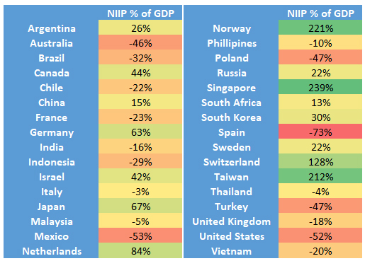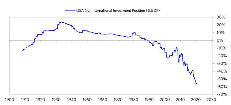 Chart Source: Trading Economics The US net international investment position has absolutely collapsed, with the US having gone from being the world’s largest creditor nation to the world’s largest debtor nation: