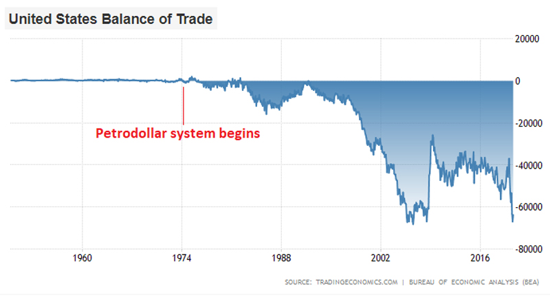 Chart Source: Bloomberg The inherent flaw of the petrodollar system, much like the inherent flaw with the Bretton Woods system, is that as previously mentioned, the United States needs to run persistent trade deficits, and is another version of the Triffin dilemma again. This can work for decades but can’t work forever.