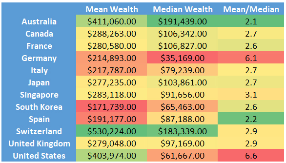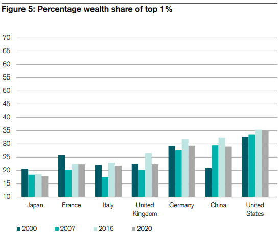 Data Sources: IMF and various central banks Wealth concentration in the US is now higher than just about any other developed nation: