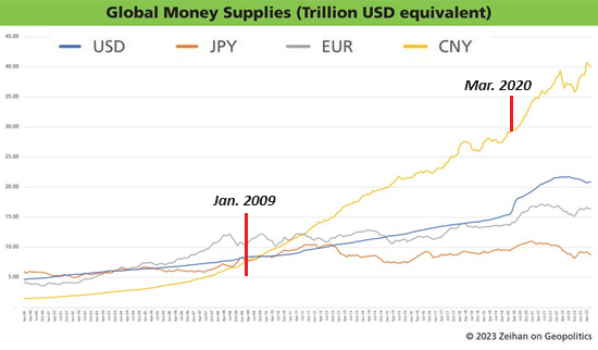 Other than China, it doesn't appear that global money supply is going parabolic: