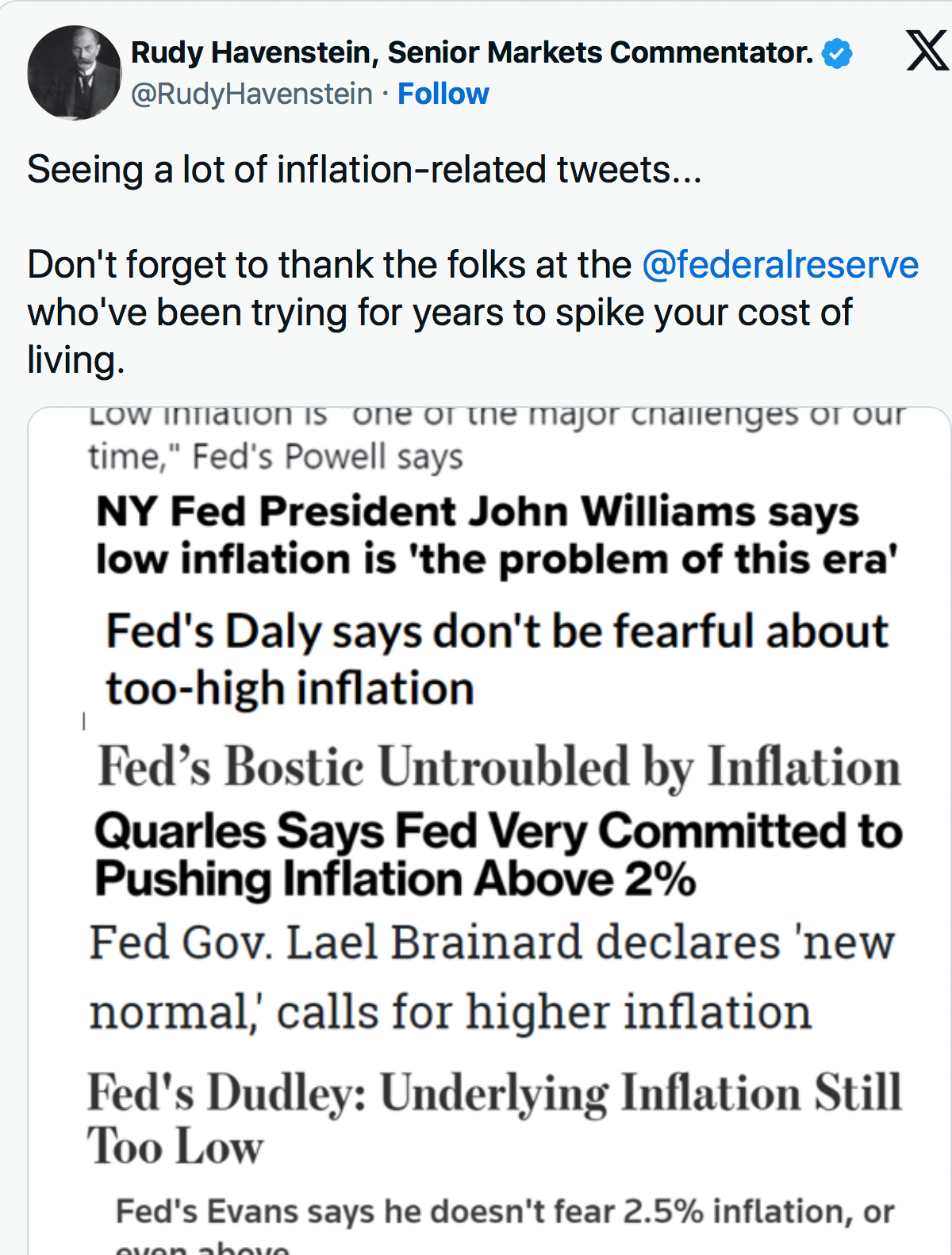 … I don’t know where inflation is going to be in a year, Powell doesn’t know. I don’t think anybody knows.