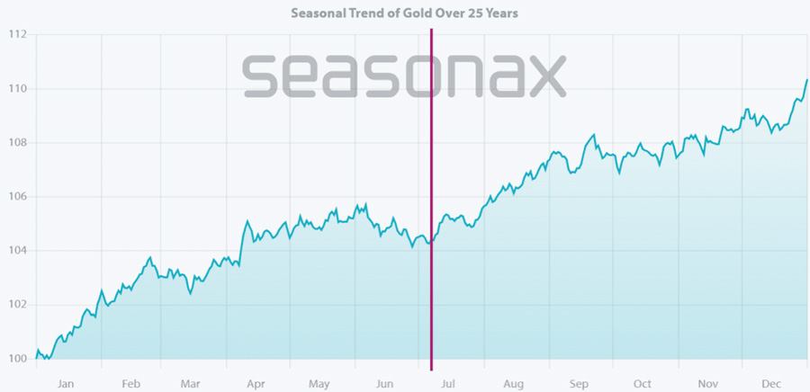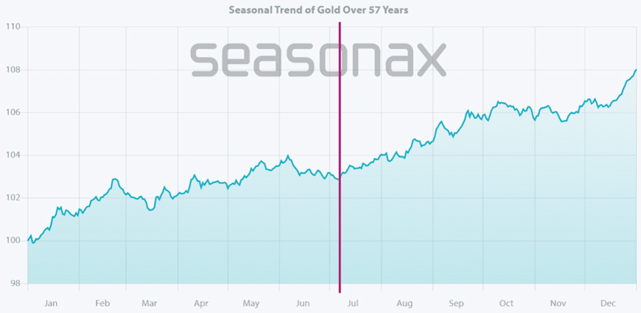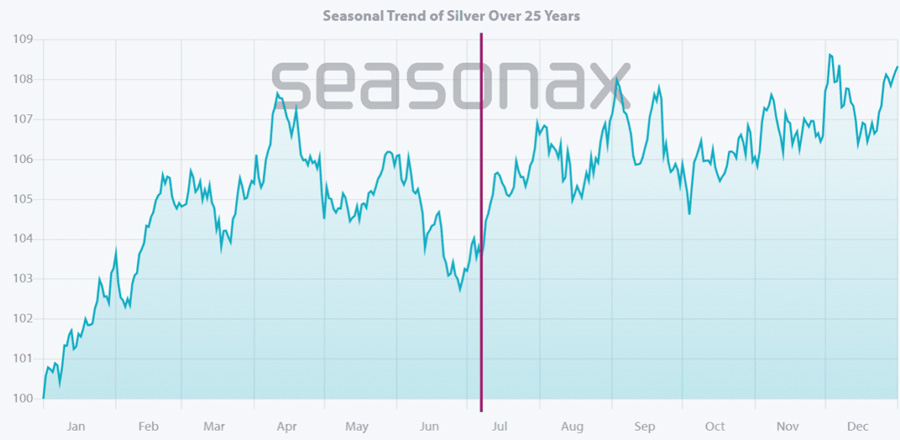 Just as strawberries taste best in June, there are times when gold and silver are historically in season. Early July, as it turns out, is one of those moments. A look at the seasonal charts spanning 15, 25, and 57 years shows a familiar pattern. Prices tend to dip in early July, offering a potential entry point before the usual late summer and autumn rally. Across all timeframes, gold typically finds a bottom in early July, then rallies through August and into the fall. Silver’s price action is more dramatic, but the early July dip is clear, often followed by a robust late summer bounce. Entering at a seasonal low is not about chasing a quick buck, it is about giving yourself a little historical edge.