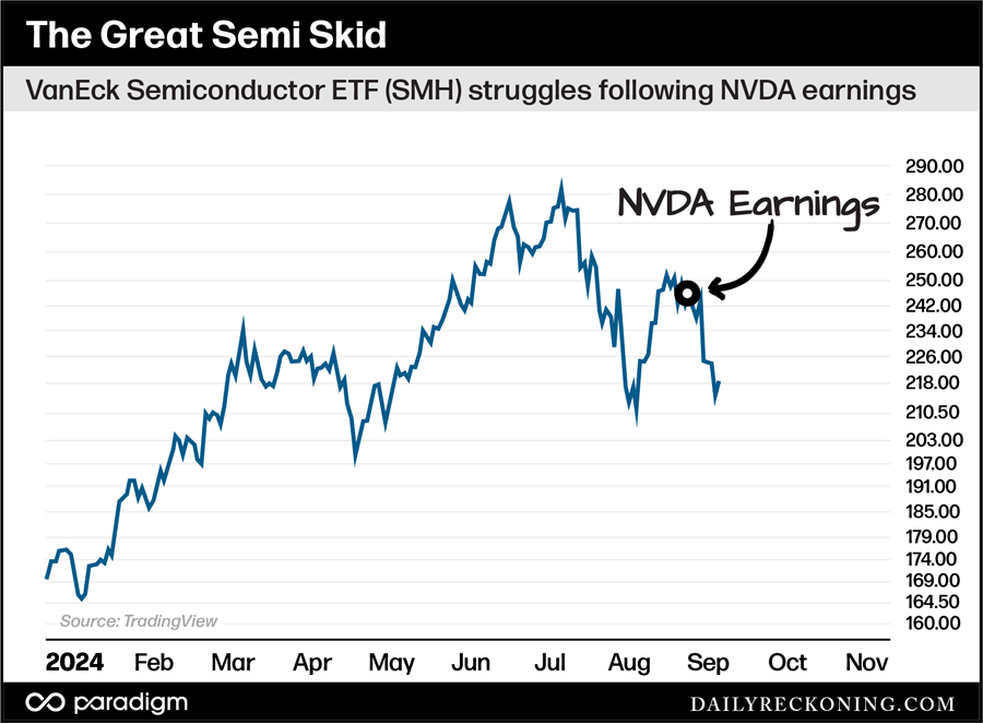The VanEck Semiconductor ETF (SMH) is down 15% from its August highs — and 23% removed from those all-time highs set back in July.