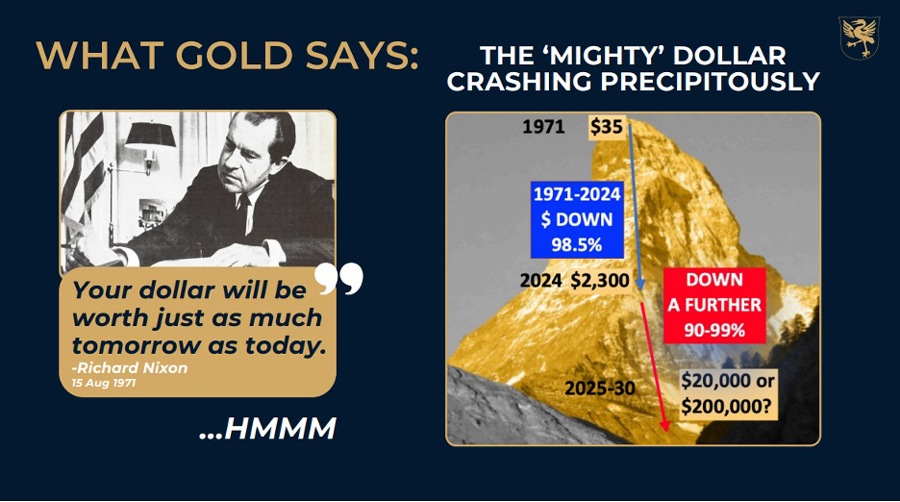As in every liquidity, market and political crisis throughout history, gold will store value far better than any debased currency engineered to inflate away national debt disasters with debased money. This explains gold’s deliberately ignored tier-one asset status, its greater favor (and performance) over USTs and USDs and its historically-confirmed answer to every currency crisis since time was recorded. It also explains why none of our Anti-heroes – from DC to Brussels – will talk about gold out loud. They are literally allergic to blunt truth, historical lessons or simple math. For an informed minority, however, sophisticated investors will forever hedge against the golden tongues of anti-heroes with the golden bars of time and nature. Courtesy of VonGreyerz.gold