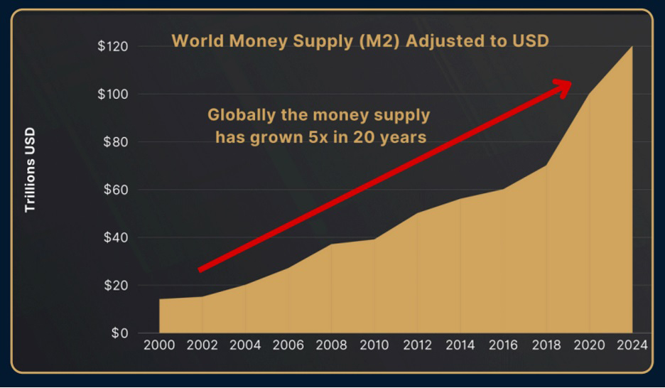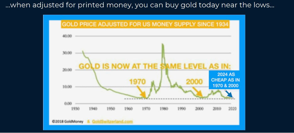 More Candor—Less Anti-Heroes We stand today at the edge of a market, social and political cliff built upon unprecedented levels of post-08 debt and money supply expansion. The current public debt of $35T and a government debt-to-GDP ratio of 125-30% is mathematically unsustainable and makes real (rather than debt-driven) growth objectively impossible. Today, we and our children’s generation are the inheritors of the sins of such anti-heroes. If easy money leads to market bubbles, drunk investing and sobering crashes, then we can all see what’s coming as Powell inches predictably from rate hikes, to a rate pause to rate cuts. Next, will come a deflationary recession and/or market correction followed by Super QE to absorb Uncle Sam’s unwanted IOUs, $20 trillion of which are projected in the next 10 years by our Congressional Budget Office. The anti-heroes, of course, won’t say this, and they certainly won’t take accountability. Instead, they will lie – blaming the troubles now and to come on Putin, COVID, global warming and their opposing party. Gold, however, will be more honest. Gold is not a debate against paper or crypto money, but a voice of yesterday, today and tomorrow. When money is expanded by 5X in just 20 years, it dilutes its value…