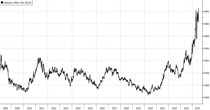 Meanwhile, Giuseppe Lavazza, chairman of coffee roaster Luigi Lavazza SpA, told Bloomberg in a separate report that low-cost robusta beans in Vietnam, the world's top producer of robusta, have experienced adverse weather conditions contributing to a production shortfall, thus fueling prices higher and higher.