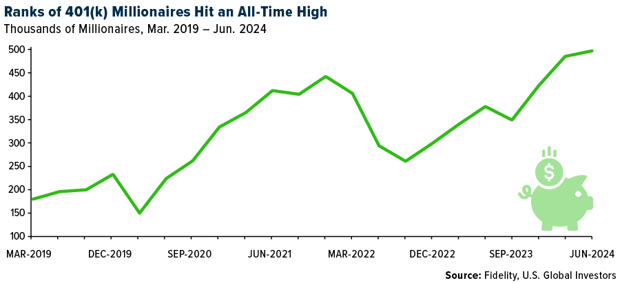 This is excellent news for general investors, including the record number of “401(k) millionaires”—investors who have $1 million or more in their retirement accounts. According to Fidelity, there are now almost half a million such millionaires… and growing!