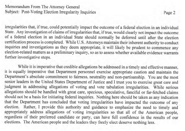 November 9th, 2020, Response from US Attorney General Barr to US Attorney McSwain and other reports from within the chain of command of the US Department of Justice – Part 2