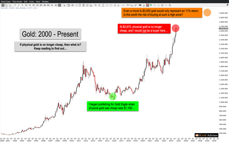 Yet I will say this again: I would not be buying physical gold at $2,670 per ounce, because it is not cheap. I am a contrarian, I like to buy assets when they are out of favor… and gold has risen too far too fast for it to be cheap now.