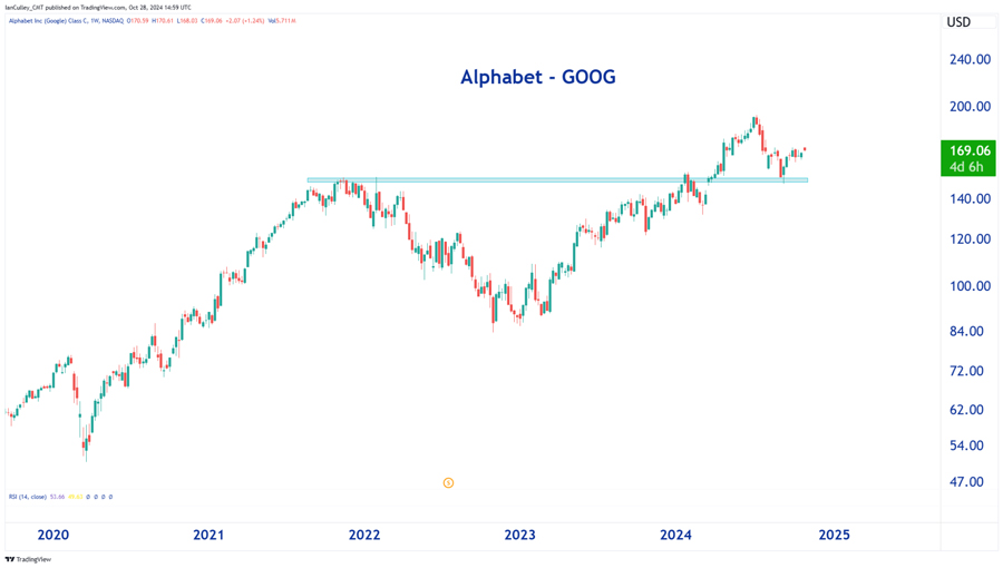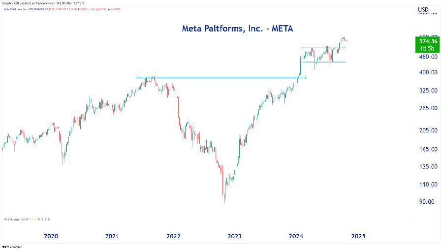 Say what you like about Zuck and his metaverse plans – META is up 545% off its 2022 lows. Today it sits just about 5% off its all-time highs posted earlier this month. The stock just completed a 5-month consolidation on its way to new all-time highs, making it the strongest chart of the Mag 7s heading into earnings. A solid beat could keep the party going to $600 and beyond…