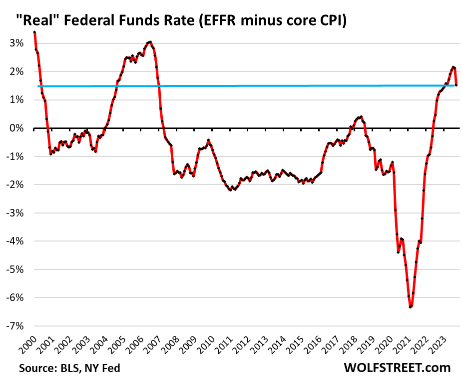 The problem arises if inflation gets on a consistent path of acceleration. Powell and Fed governors have pointed at this risk many times. They’re fully aware of this risk. They’re leery of inflation going the wrong way again in a sustained manner. Inflation has been going the wrong way in recent months, but for a sustained acceleration, we’d need to see a lot more bad data, given how volatile the data is, to establish a solid trend. And they’re leery of that. They have not declared victory and have said so. But the media has declared victory over inflation, no matter what the Fed or the data say.