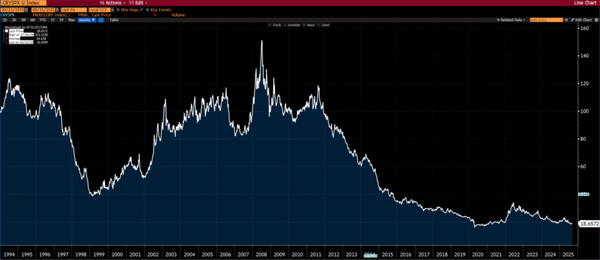 Japan carries the world’s heaviest debt load — at over 250% of GDP. For years, the BOJ capped yields with yield curve control, essentially limiting how high they could rise. But global pressure forced a shift, and 30-year Japanese yields broke 3% for the first time. And they’re now screaming higher.