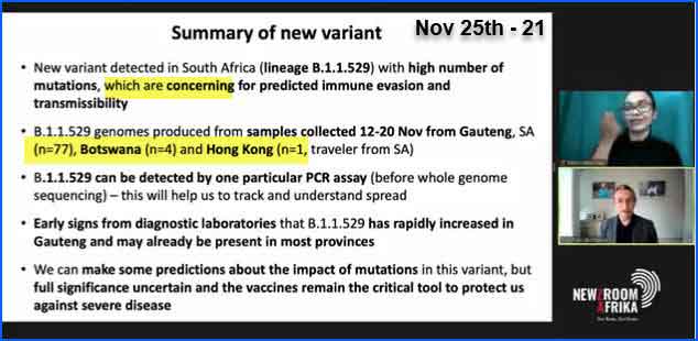 Part I of this exclusive report details what we know about the new SARS-CoV-2 ‘variant of concern’. News of this new variant absolutely smashed across the world stage on Wednesday/Thursday of the US Thanksgiving holiday week. The wall of coverage was intense and saturating. Every major print and news video outlet in every western nation covered this new variant in-depth and in urgent, if not overtly fearful tones. Even ‘weather.com’ managed to sneak out an “everything you need to know” article in just a few hours.