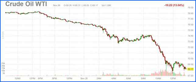 On Thursday (Thanksgiving) night stock futures began to tumble and on the shortened trading day of Friday (11/26/21) US equities were hammered for big losses. The US Dow lost over 1100 points when the brief (15 min) aftermarket futures session is included: