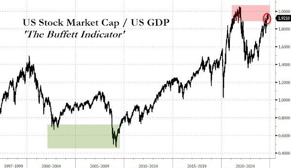 It's hardly a surprise why: as we noted in "Berkshire's Growing Cash Pile Has A Hidden Message On Stocks" the Buffett Indicator has rarely signaled a more expensive market.