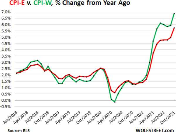 Basically, the “basket of goods” that elderly people might focus on more than younger people (like medical and shelter) are weighted more heavily in the “E” inflation.
