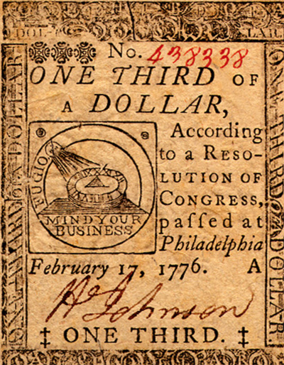 The continental was paper money. It had occurred to the colonists that, as their revolution was costing quite a bit to maintain, they could go into “temporary” debt to finance the war. Soon it became clear that the debt could not be repaid. Also, the printing of paper banknotes resulted in inflation. The solution? Print more of them. Further devaluation of the continental motivated the colonists to print more… then more… then still more. Read More |
