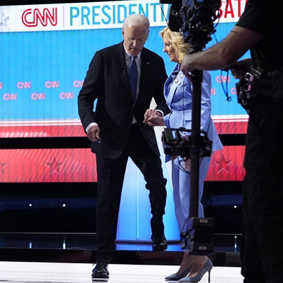 Before Thursday’s CNN debate even started, as Donald Trump deboarded from his plane, it was evident that Melania Trump did not come along to support her man. Jill Biden, however, did come to support her man … quite literally when she rushed on stage after the debate to help guide him off the platform, taking secure hold of his arm, leading him in the right direction, and then steadying him as he feebly felt out his first step down on the path that will end his career as president. Read More | ![]() |